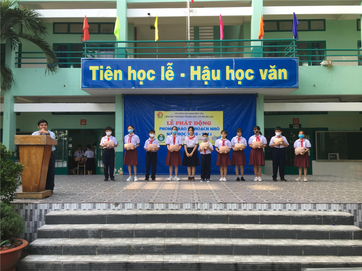 Ngày 21/9/2020, Liên đội Trường THCS An Lạc đã tổ chức phong trào kế hoạch nhỏ và nuôi heo đất nhằm giáo dục học sinh tinh thần tiết kiệm và giúp bạn vượt khó học tốt.Đến dự buổi lễ có Cán bộ quản lí, giáo viên chủ nhiệm và gần 1600 học sinh của Trường.